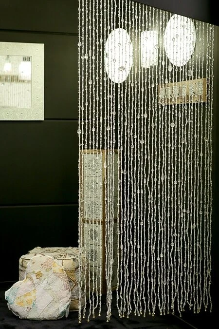 De kralengordijnen worden met oog voor detail in Oosterse landen gemaakt. Het glas wordt gesmolten en tot kraal gevormd. De glaskralen worden stuk voor stuk met de hand geregen op ijzersterk nylonsnoer. Na ongeveer 20 kleine kralen wordt er een grote kraal aan de streng geregen. Zowel de kleine als de grote glaskralen hebben andere vormen. Deze werkwijze zorgt ervoor dat geen enkel glaskralengordijn hetzelfde is. Aan de onderkant van een kralenstreng is een koperkleurig belletje aangebracht.