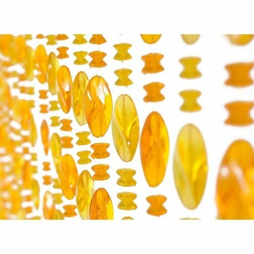 Dit kralengordijn met parelvormige hangertjes zorgt voor een vrolijke noot in huis. De kraaltjes hebben een parelachtige vorm en zijn afgewisseld met kleine ronde hangertjes. Het kralengordijn wordt over het algemeen gekocht om deuropeningen binnenshuis te voorzien van iets decoratiefs. Uiteraard kun je dit deurgordijn ook als zijnde vliegengordijn in de opening van je buitendeur hangen, maar er zit wel wat ruimte tussen de strengen, veel vliegen zullen worden tegengehouden, maar ongetwijfeld zullen er ook wat tussendoor naar binnen vliegen als je deze hele dag je deur open hebt staan.