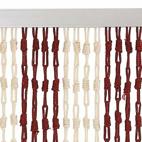 Dit knots vliegengordijn is eenvoudig boven je deurpost te bevestigen. Het enige wat je hoeft te doen is twee schroefjes in of boven het deurkozijn boren. Het aluminium profiel bevat twee verschuifbare haakjes waarmee je het vliegengordijn dus zo aan de schroefjes kunt ophangen.