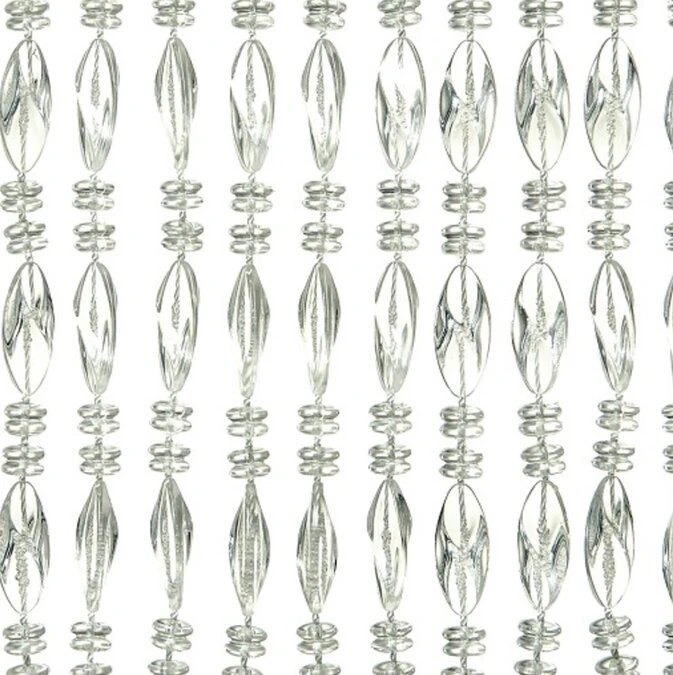 Dit zijn kwalitatief gezien echt goede kralengordijnen. De draadjes die gebruikt zijn, zijn gemaakt van nylon en dus extra sterk. De kunststof kralen zijn stuk voor stuk aan het nylon draad gesmolten. Het geheel hangt aan een witte cassette. Het is een vrij dicht kralengordijn waarbij er op circa elke centimeter een streng hangt. Om als voorbeeld even een vliegengordijn met een breedte van 90cm te noemen; hier hangen circa 90 strengen aan.