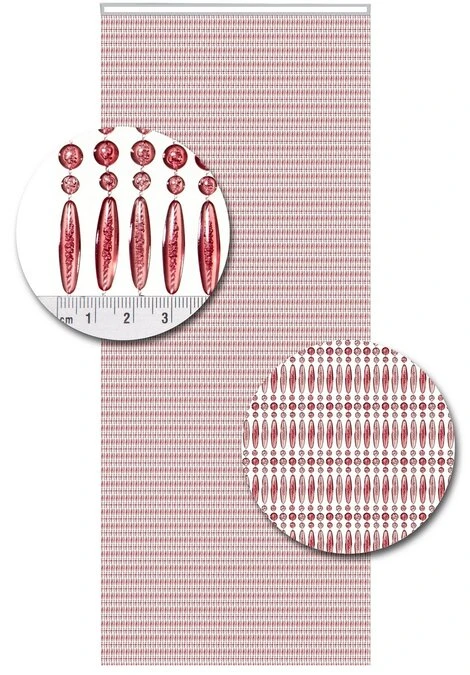 Dit zijn kwalitatief gezien echt goede kralengordijnen. De draadjes die gebruikt zijn, zijn gemaakt van nylon en dus extra sterk. De kunststof kralen zijn stuk voor stuk aan het nylon draad gesmolten. Het geheel hangt aan een witte cassette. Het is een vrij dicht kralengordijn waarbij er op circa elke centimeter een streng hangt. Om als voorbeeld even een vliegengordijn met een breedte van 90cm te noemen; hier hangen circa 90 strengen aan.