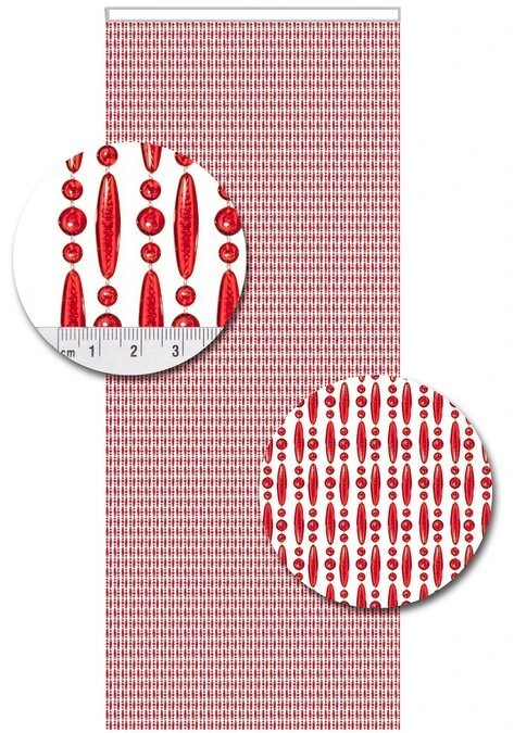 Dit zijn kwalitatief gezien echt goede kralengordijnen. De draadjes die gebruikt zijn, zijn gemaakt van nylon en dus extra sterk. De kunststof kralen zijn stuk voor stuk aan het nylon draad gesmolten. Het geheel hangt aan een witte cassette. Het is een vrij dicht kralengordijn waarbij er op circa elke centimeter een streng hangt. Om als voorbeeld even een vliegengordijn met een breedte van 90cm te noemen; hier hangen circa 90 strengen aan.
