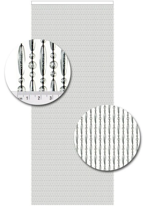 Dit zijn kwalitatief gezien echt goede kralengordijnen. De draadjes die gebruikt zijn, zijn gemaakt van nylon en dus extra sterk. De kunststof kralen zijn stuk voor stuk aan het nylon draad gesmolten. Het geheel hangt aan een witte cassette. Het is een vrij dicht kralengordijn waarbij er op circa elke centimeter een streng hangt. Om als voorbeeld even een vliegengordijn met een breedte van 90cm te noemen; hier hangen circa 90 strengen aan.