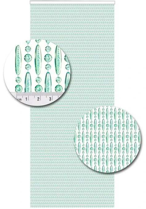 Dit zijn kwalitatief gezien echt goede kralengordijnen. De draadjes die gebruikt zijn, zijn gemaakt van nylon en dus extra sterk. De kunststof kralen zijn stuk voor stuk aan het nylon draad gesmolten. Het geheel hangt aan een witte cassette. Het is een vrij dicht kralengordijn waarbij er op circa elke centimeter een streng hangt. Om als voorbeeld even een vliegengordijn met een breedte van 90cm te noemen; hier hangen circa 90 strengen aan.