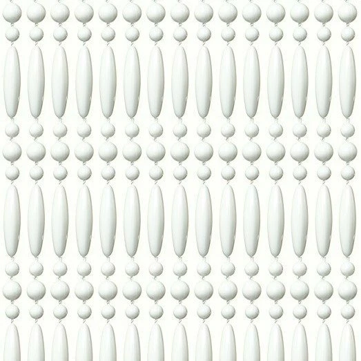 Luxe kralengordijn gemaakt van nylon draad. De kunststof kralen zijn stuk voor stuk aan het nylon draad gesmolten. Het geheel hangt aan een kunststof witte cassette.