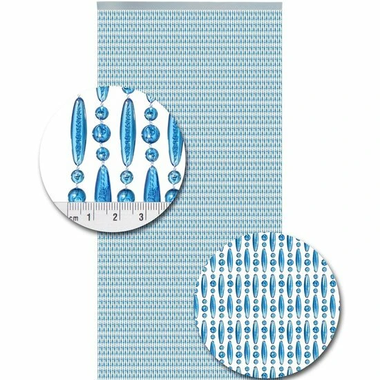 Luxe kralengordijn gemaakt van nylon draad. De kunststof kralen zijn stuk voor stuk aan het nylon draad gesmolten. Het geheel hangt aan een kunststof witte cassette.