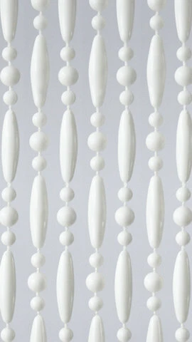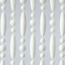 Luxe kralengordijn gemaakt van nylon draad. De kunststof kralen zijn stuk voor stuk aan het nylon draad gesmolten. Het geheel hangt aan een kunststof witte cassette.