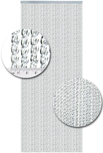 Dit luxe vliegengordijn is gemaakt van buigzaam kunststof. De strengen bestaan uit dikke rond gedraaide kunststof draden. In het kunststof zit een wit koord verwerkt. Dit koord zorgt ervoor dat het vliegengordijn bij warmte of kou niet gaat krimpen of uithangen. Daarnaast zorgt het voor kleur in het transparante vliegengordijn. De strengen hebben een luxe, chique uitstraling en blijven niet haken zodra je naar binnen of buiten loopt. Het geheel hangt aan een brede witte ophangcassette.